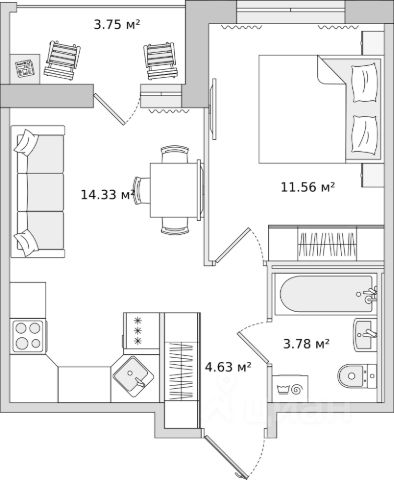 Просторная кухня-гостиная? Нет, это классика, но с отличными пропорциями: жилая комната 15,3 кв. м. и отдельная большая кухня 11,0 кв. м. — настоящая мечта для хозяйки.