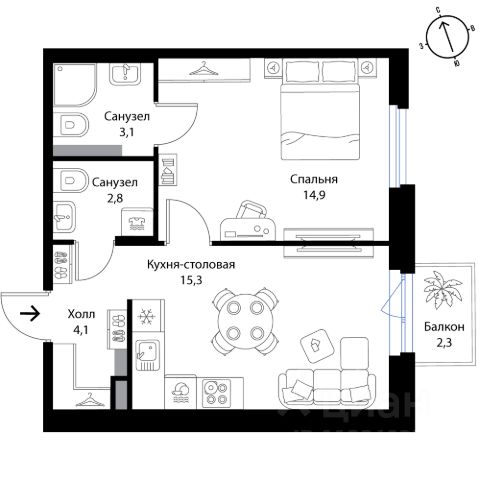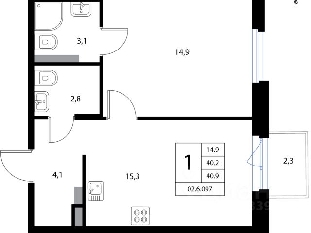 Продаётся 1-комнатная квартира в строящемся доме (Дом 6), срок сдачи: II-кв. 2026, общей площадью 34.1 кв.м., на 2 этаже. Новый жилой комплекс "Экография" от застройщика "ОХТА Групп - Петергоф" расположен по адресу Ленинградская область, Ломоносовский район, Низинское сельское поселение, деревня Ольгино.