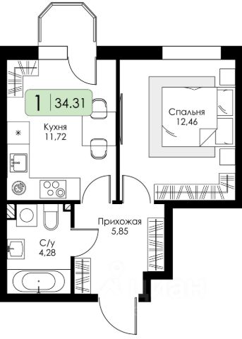 При входе есть место под глубоктй шкаф купе-60 см, болшая совмещенная ванная с туалетом, где поместиться стиральная машинка, к комнате-гостинной отделена зона, для кухни. В квартире есть 2-е колонны, как раз в зоне приготовления пищи, там прекрасно рисуется дизайн-проект со столом(типа барной стойки), так же сверху можно разместить полку, для бокалов, микроволновки или так же продолжить систему кухонного хранения. как раз получается отдельный островок. Остальная часть под огромный диван, телевизор или просто фитнес зал, кто что хочет. Очень получается уютно. Окна смотрят во двор, вдали от проезжей части, никогда не будет шума.