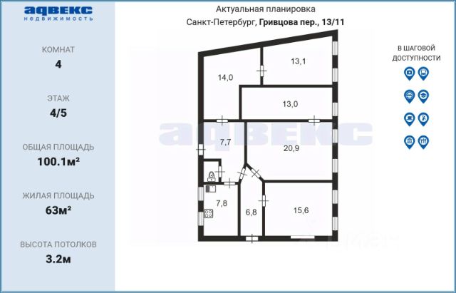 4-8 мин.пеш: Спас на Крови, Русский музей и множество других замечательных музеев;