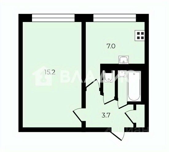 - Жилая площадь: 15,2 кв. м.