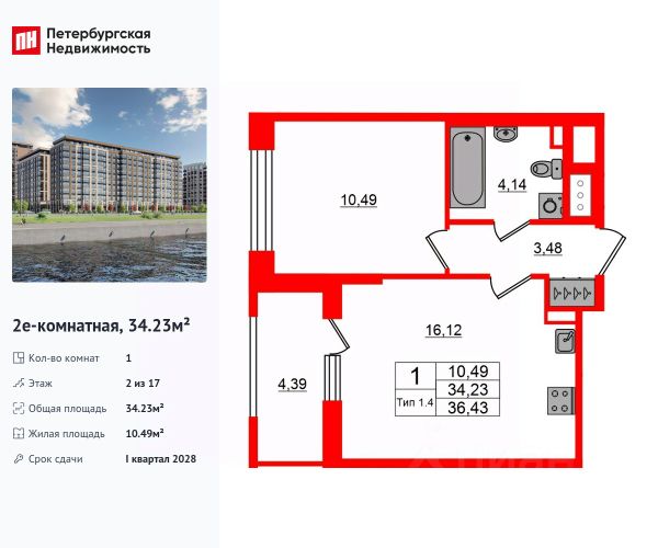 - Кухня 8 м2 и большая изолированная комната 15,4 м2 с просторной нишей-альковом, куда вмещается полноразмерная двухспальная кровать.