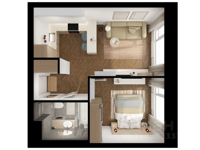 Планировка оптимизирована для комфорта: кухня и гостиная образуют единое светлое пространство для общения и отдыха, при этом спальня остаётся полностью изолированным приват-пространством. Для наглядности и Вашего удобства к объявлению прикреплены подробный видео-обзор, актуальная планировка квартиры, а также её 3D-визуализация.