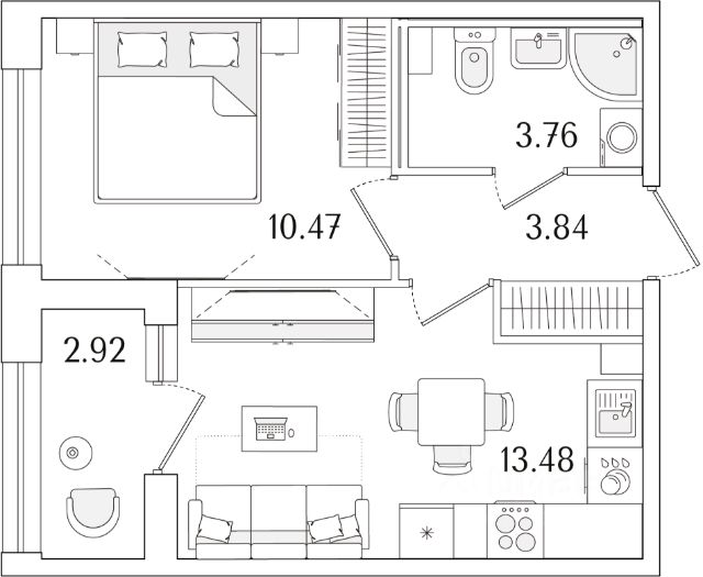 Квартира с одной спальней в комплексе "Сампсониевский 32" от LEGENDA на 2 этаже. -Общая площадь: 51.68 кв.м. -Жилая: 11.56 кв.м. -Площадь просторной кухни-столовой: 17.47 кв.м. -Высота потолков 2.7 м. Все окна выходят на одну сторону. В квартире один раздельный санузел. ЖК "Сампсониевский, 32" квартал бизнес-класса в Выборгском районе Санкт-Петербурга недалеко от набережной Большой Невки и Петроградской стороны. Отличают комплекс каскадные фасады с большой площадью остекления, видовые квартиры с террасами. Современные инженерные и технические решения, повышающие качество жизни TechnoBox включают в себя: стационарный и удаленный контроль дома, систему Air Design, обеспечивающую чистый воздух без лишнего шума, мультисервисную сеть, объединяющую коммуникационные системы. Квартиры сдаются с предчистовой отделкой: выровнены пол и стены, проведена электрика, предусмотрена шумоизоляция, встроенная система вентиляции. В каждой квартире установлена взломостойкая входная дверь, окна со специальным термоизолированным алюминиевым профилем. В ЖК "Сампсониевский, 32" много вариантов планировок: квартиры с террасой, мастер-спальней, ванной комнатой с окном, гардеробной комнатой. Двор закрыт от транспорта, здесь будут зоны с дизайнерским оформлением для игр и отдыха. Срок сдачи 4 квартал 2026 года. В отапливаемом подземном паркинге 298 мест, спуститься туда можно на лифте из своей квартиры. Комплекс находится на границе крупных районов, рядом с набережными, которые ведут в Приморский, Калининский и Центральный районы, а через Сампсониевский, Гренадёрский и Кантемировский мосты можно попасть в Петроградский район. До станции метро "Выборгская" 900 м, до станции метро "Петроградская" 2,6 км. Финляндский вокзал находится в 2,5 км от ЖК, а Западный скоростной диаметр (ЗСД) в 10 км. Рядом с ЖК находится несколько гимназий, общеобразовательных школ и детских садов. Здесь много медицинских учреждений, кафе, ресторанов, торговых центров, гипермаркетов. Меньше чем в 1 км от ЖК Сампсониевский и Выборгский сады, а в 2 км находится Ботанический сад, набережная реки Карповки с качелями и зонами отдыха у воды.