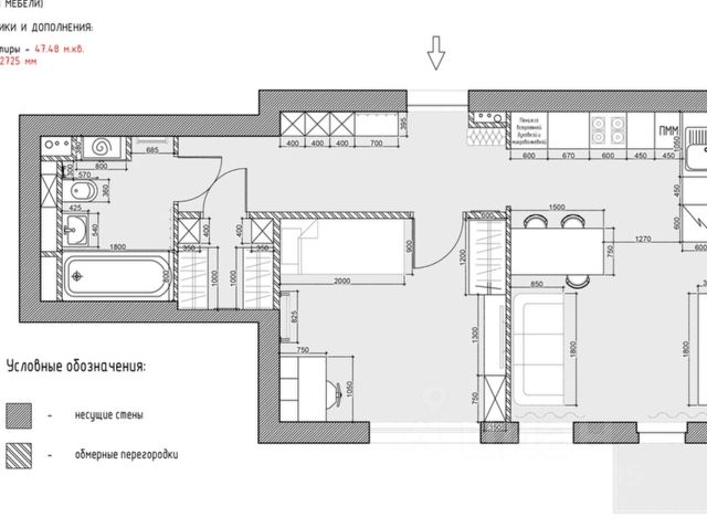 - Высота потолков: 2,5 м.