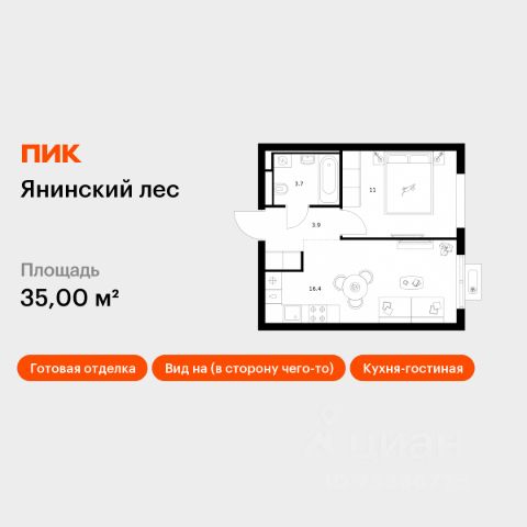Продаётся 1-комн. квартира площадью 37,4 кв.м на 2 этаже 15 этажного дома (Корпус 8, Секция 1) проекта ПИК Янинский лес. Светлый просторный подъезд на уровне земли, функциональная планировка, большие окна, c отделкой. Жилой квартал "Янинский лес" возводится в районе Янино-1 Ленинградской области. Автобусная остановка находится в 3 минутах пешком. Проект расположен вплотную к восточной границе Санкт-Петербурга - в 4 минутах от КАД. До метро "Ладожская" - 23 минуты на общественном транспорте. До исторического центра города можно доехать за 25 минут на автомобиле. "Янинский лес" - масштабный проект из 32 жилых корпусов, где будет всё для комфортной жизни. Здесь предусмотрены надземные паркинги, откроются детские сады, школа и поликлиника. Кроме этого, появятся места, в которых можно проводить свободное время: ледовая арена и торговый центр площадью больше 3000 м². Жилой район строится по всем правилам ПИК-Стандарта: в зелёных дворах-парках появятся современные детские и спортивные площадки, пешеходный бульвар и другие места для отдыха. На первых этажах разместятся магазины, кафе и другие сервисы. Во дворах не будет автомобилей, а для гостей предусмотрены парковочные места. Проект окружают лесные массивы. В пешей доступности находится Ржевский лесопарк: летом там можно гулять и собирать грибы, а зимой кататься на лыжах. Также рядом расположен памятник природы Колтушские высоты - парк с обустроенными экотропами и веломаршрутом. А главное место притяжения местных жителей - озеро с обустроенным местом для пикников. Артикул 914783 (Застройщик ООО "СПЕЦИАЛИЗИРОВАННЫЙ ЗАСТРОЙЩИК"ЭКСТРАГРАД") [cn_sbp_1442000]