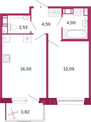 Кухня: 7,66 м² — место для кухни-гостиной вашей мечты.