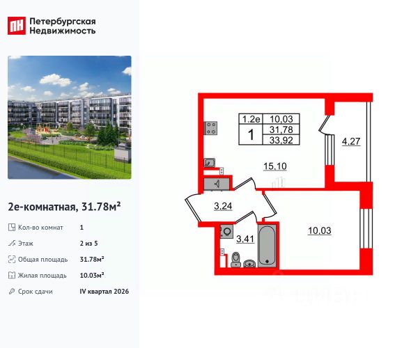 Продажа 1-комнатных квартир на 2 этаже в районе Московский в Санкт-Петербурге