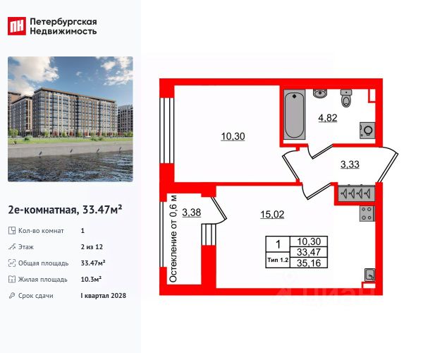 Цена со скидкой до 30% в прямой продаже от застройщика — только в этом месяце. На апартаменты действует беспроцентная рассрочка. Роскошные виды на Неву. 1-к апартамент в комплексе класса бизнес-лайт Зум на Неве на 2-м этаже. Общая площадь 39,1. Без отделки. Зум на Неве расположен в новом месте силы рядом с центром города на первой линии Октябрьской набережной в Невском районе, всего в 7 км от исторической части Санкт-Петербурга. Большой выбор эргономичных и максимально продуманных планировок позволит каждому найти вариант по душе. Панорамные виды на Неву, благоустроенные дворы, детская игровая комната, подземный паркинг, коммерческие зоны на первом этаже, это и многое другое делает Зум на Неве идеальным местом для жизни. Особенности: - Панорамные виды на Неву и город; - 10 мин. до Парка Строителей, 15 мин. до Лондон-молла, Ленты, Максидома, 15 мин. до метро "ул. Дыбенко", 12 мин. до КАД, 10 мин. до центра; - Единая архитектурная концепция. Сдержанные и монументальные фасады в неоклассическом стиле; - Парадный лобби для жильцов. Единый вход в комплекс с администратором, зоной ресепшн и охраной, зоной для бесконтактной доставки посылок и еды; - Подземный отапливаемый паркинг с доступом из парадной; - Доступно 3 варианта отделки на выбор: черновая, предчистовая (White Box) и чистовая; - Зоны отдыха для взрослых и детей, Wi-Fi-покрытие во дворе и в паркинге, зоны для питомцев, арт-объекты и много другое. В шаговой доступности вся необходимая инфраструктура от детских садов и школ до супермаркетов и салонов красоты; - Все происходящее контролируется видеокамерами, а покой внутренней территории и безопасность ваших детей гарантируется полным отсутствием транспорта во дворах в концепции "без машин".