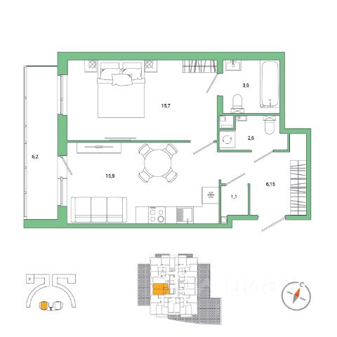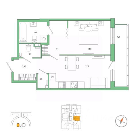 Квартира на площадке максимально удалена от лифтового холла, крайняя в секции. Соседи только с одной стороны. Всегда тихо и спокойно.