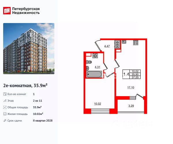 Продается просторная 1-комнатная квартира от застройщика в жилом комплексе "Астра Континенталь" в активно развивающимся Невском районе. До метро можно добраться пешком всего за 5 минут. Удобная, классическая, функциональная европланировка, большая кухня-гостиная 17.59 м², просторная прихожая 4.64 м². Общая площадь квартиры - 36.72 м², жилая 10.09 м², высота потолка 2.77 м. Квартира продается с отделкой "NORD LINE SILVER ВК NEW". Что особенного в ЖК "Астра Континенталь"? • Уникальная локация 400 метров до метро, 300 метров до благоустроенной набережной • Самодостаточный квартал со всей инфраструктурой в 3-х км от центра • Впечатляющий объем благоустройства: 30 000 кв. метров рекреационных зон с променадом и гейзерными фонтанами • Масштабный парк "Город Спорта"