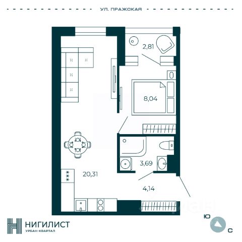 Это не просто метры, а продуманное евро-планировочное решение с двумя зонами: