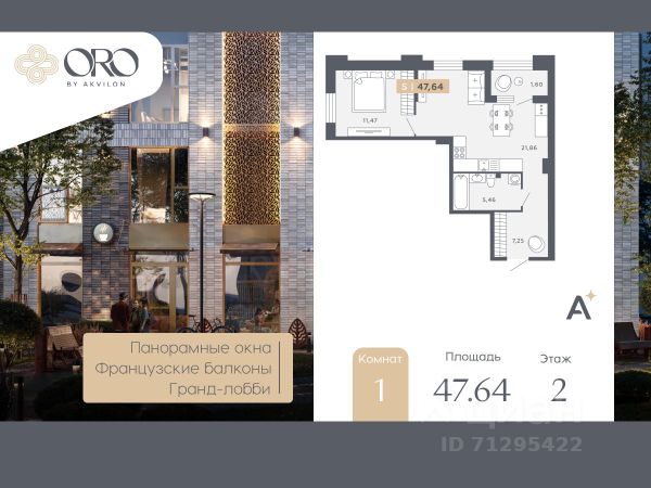 Продается однокомнатная квартира от застройщика с отделкой в ЖК "ORO by Akvilon" на 2 этаже. Общая площадь: 40.2 кв.м., жилая: 10.99 кв.м., площадь просторной кухни-столовой: 17.71 кв.м. Все окна выходят на одну сторону. В квартире одна лоджия, один совмещенный санузел. Высота потолков 2.85 м. Дом монолитный, двухподъездный, высотой 17 этажей. Квартира находится в 1-й секции в корпусе 2. На этаже 7 квартир. В подъезде 1 пассажирский и 1 грузовой лифт. Окончание строительства - 4 квартал 2027 года. Оформление сделки по договору долевого участия. В шаговой доступности от жилого комплекса имеется станция метро (расстояние по прямой) "Звёздная" (800 м), также недалеко от этого корпуса расположены станции метро: "Купчино", "Московская", "Ленинский Проспект", "Дунайская". ЖК "ORO by Akvilon" - старт продаж жилого комплекса бизнес-класса в Московском районе. -Панорамные окна в пол во всех квартирах -Алюминиевые оконные профили с многокамерными стеклопакетами -Французские балконы с золотой окантовкой -Высота этажа 3,15 метра -Увеличенные дверные проемы - 2,3 метров высотой -Выделенные места для кондиционеров на каждом этаже -Фреоновые трубки заведенные в квартиру от мест установки внешних блоков кондиционеров -Дизайнерская отделка гранд-лобби с биокамином и золотыми элементами -Импортные бесшумные лифты с дизайнерской отделкой и увеличенной высотой кабины Отделка квартир Премиальная отделка в двух цветовых решениях: Beigestone и Greystone. Дозаказ для любой квартиры Стандарты Группы Аквилон для вашей комфортной жизни Thermo-S экономия на коммунальных платежах за счет дополнительно утепленных стен, кровли и цоколя. Энергоэффективные окна с селективным покрытием и аргоновым заполнением Soundstop - дополнительная шумоизоляция внутренних перегородок и межэтажных перекрытий, шумозащитные окна, малошумные лифты Light-in - в квартирах комфортный микроклимат. Многокамерные стеклопакеты сохраняют тепло зимой и отсеивают излишки излучения солнечного света летом, сохраняя прохладу в помещении. Vent-in - в каждой комнате есть клапаны индивидуальной вентиляции, которые обеспечивают приток свежего воздуха с улицы. inHOME умный дом в каждой квартире Интеллектуальная цифровая система, которая позволит дистанционно решать бытовые вопросы, управлять квартирой и экономить на оплате коммунальных услуг. В состав inHOME входят: IP-домофон, Face key, "умные" счетчики, датчики протечки, дистанционное отключение розеток, и т.д. Подземный паркинг -Лифты в каждой секции со спуском в паркинг -Отделка лифтовых холлов паркинга в стиле Гранд лобби + дизайнерская навигация самого паркинга -Возможность установки электрозарядки в паркинге или на территории ЖК -GSM усилитель в паркинге Двор -Ландшафтный дизайн с геопластикой и цветочными аркадами -Сад цветущих сезонов -Разноуровневая подсветка -Детские площадки нового поколения -Живой зелёный забор -Закрытый двор без машин Локация -7 мин. до м. Звездная -10 мин. до м. Московская -15 мин.