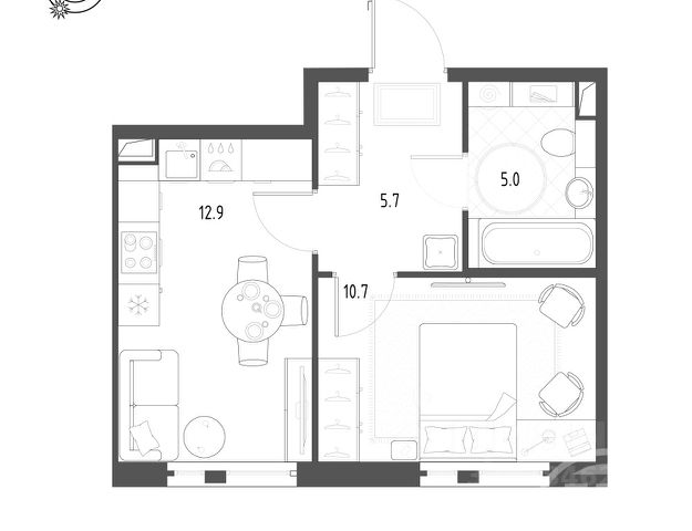 342892 Продается уютная квартира ( 2Е) , где 1 полноценная комната + кухня-гостинная, в современном жилом комплексе ЖК Монография . 36,2 м2