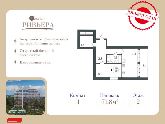 Функциональная однокомнатная квартира - Формат Light, которая подойдет для комфортного проживания небольшой семьи. Особенности лота: панорамные окна потолки 3 м большая кухня-гостиная отделка White Box. ИНДИВИДУАЛЬНЫЕ УСЛОВИЯ РАССРОЧКИ! ВЫГОДНАЯ ЦЕНА ПРИ 100% ОПЛАТЕ! Загородная жизнь с городским комфортом! Малоэтажный ЖК и небольшое количество квартир на этажах создают атмосферу приватной резиденции. В ЖК бизнес-класса Ranta Residence нет студий: все квартиры имеют площадь от 36 м² до 99 м². Прописка Санкт-Петербург. БЛАГОУСТРОЙСТВО Закрытая охраняемая территория, современный ландшафтный дизайн от студии L.Buro, натуральные материалы в обустройстве, а также резидентам ЖК будут доступны: теннисный корт на крыше паркинга; коворкинг под открытым небом; финский павильон с живым очагом и шезлонгами; павильон с барбекю; гамаки, скамейки и лежаки; спортивные и детские площадки; три прогулочные аллеи, амфитеатр; водный арт-объект; сад скульптур и пряных трав. ИНФРАСТРУКТУРА Мы создаём атмосферу закрытого клуба и интересного комьюнити, только для резидентов ЖК будут доступны: Бэби-клуб с детской комнатой и заботливой няней; Спортивный зал с тренажерами; Зал для йоги и стретчинга; Коворкинг; Кофейня; Собственный детский сад и начальная школа. В пешей доступности расположены: ТЦ Курортный Продуктовые магазины Перекресток и Пятерочка Аптека Кафе быстрого питания 4 школы и 3 детских сада Взрослая и детская поликлиники Рестораны и парки. ЛОКАЦИЯ ЖК бизнес-класса Ranta Residence расположен в экологически чистом Курортном районе Санкт-Петербурга, занимает участок площадью 5,4 Га по адресу: г. Санкт-Петербург, г. Зеленогорск, ул. Кривоносовская 57Д. ЖК Ranta Residence граничит с лесным массивом, также поблизости находятся: Государственный природный заказник "Озеро Щучье"; Золотой пляж; Комаровский берег; Зеленогорский парк культуры и отдыха; Горнолыжный курорт Пухтолова гора всего в 15 минутах на автомобиле . Съезда на ЗСД находится в 18 км, до ближайшей станции метро Беговая путь на автомобиле займет в среднем 50 минут, а до центра Санкт-Петербурга путь составит в среднем 60 минут. От ЖК Ranta Residence до центра Санкт-Петербурга около 60 км (по Зеленогорскому или Приморскому шоссе — они идут параллельно). До "Лахта-центра" 45 км и 45 минут в пути. В 15 минутах от ЖК на Вокзале Зеленогорск можно сесть на Ласточку, которая за 55 минут доезжает до Финляндского вокзала, там же есть автобусная остановка, от которой можно доехать к станциям метро Беговая и Черная речка" - этот путь займёт около 1,5 часа. Хотите узнать подробности? Звоните в Отдел продаж, наши специалисты ответят на все интересующие вас вопросы! #Зеленогорск, #Курортный район, просторная планировка, #малоэтажный, закрытый охраняемый двор, #бизнес-класс, панорамные окна, потолки 3 метра. Продается 1-комнатная квартира на 2 этаже в Зеленогорске.