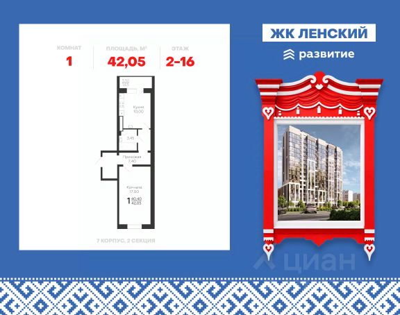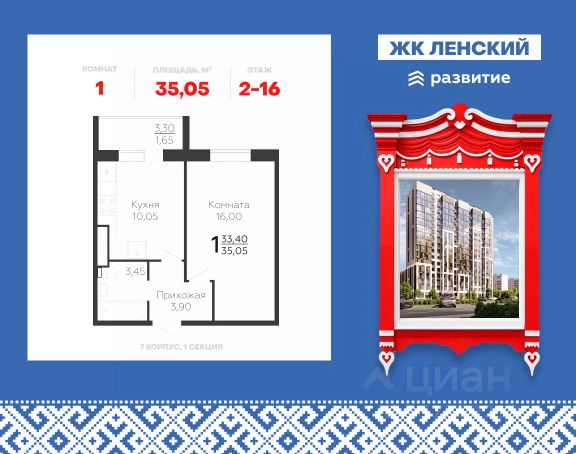 Продается 1-комнатная квартира 35 кв.м. на 4 этаже. В продаже квартира в жилом комплексе комфорт-класса "Ленский". Проект расположен в Южном микрорайоне Всеволожска, всего в 16 км от КАД, с удобным выездом на Колтушское шоссе и Дорогу Жизни — до центра Санкт-Петербурга около 30 минут. Локация сочетает природу и развитую инфраструктуру: рядом заповедники, пляжи, экотропы и усадьбы. Это спокойный ритм жизни среди сосен — с сохранением всех удобств городской жизни. В его состав входят два 18-этажных корпуса с видами на Колтушские высоты, сервисы повседневной инфраструктуры, собственный приватный двор, просторный паркинг для жителей и гостей. Девелопер проекта - федеральный застройщик ГК "Развитие". Транспортная доступность На автомобиле: • 30 мин до станции метро "ул. Дыбенко" • 35 мин до центра Санкт-Петербурга Архитектура Архитектурный облик отличается современным дизайном. Панорамные окна с большой площадью остекления наполняют квартиры светом, актуальная финская технология Peikko защищает квартиры от промерзания даже в северном климате. Дома прочные, долговечные, их конструкция гарантирует тёплый микроклимат зимой, прохладу летом и отличную звукоизоляцию. Планировочные решения Функциональные планировки отличаются простотой и эргономичностью, пространство эффективно используется даже на небольшой площади. К кухне примыкает просторная лоджия с панорамным остеклением, во всех двух- и трехкомнатных квартирах - по два санузла. Все квартиры сдаются с предчистовой отделкой, которая позволяет существенно сократить стоимость и сроки ремонта. По желанию доступны варианты чистовой отделки под ключ: "комфорт" и "бизнес" с использованием современных материалов. Благоустройство - приватный двор без машин; - всесезонное озеленение; - игровые площадки для малышей и подростков; - многофункциональная зона для спортивных игр с безопасным покрытием; - места для отдыха по всему периметру; - прогулочные дорожки в тени деревьев; - парадные с просторными холлами и высокими потолками; - безбарьерная среда; - магазины, аптеки и пункты выдачи на первых этажах ЖК, всё в шаговой доступности. Окружение - 5 парков: заповедник "Колтушские высоты", парк "Софиевка", "Румболовский", "Кенша", Державинский и Алексеевский парки. За 5-10 минут можно добраться транспортом до Песчанки и Петропавловского парка. Ковалевский лесопарк выделяется прекрасными экотропами, зонами для пикников и велодорожками, а Ждановские озера - благоустроенными пляжами; - рядом Колтушинский фреш-маркет с фермерскими продуктами и крупный ТЦ "Юбилейный", где работают более 70 магазинов, кинотеатр и фуд-корт; - 10 детских садов, начальная и средняя школы, центры дополнительного образования, творческие секции; - в ближайшей доступности фитнес-центры, бассейн, теннисный клуб и даже центр верховой езды; - культурные и знаковые места: Музей-усадьба "Приютино", музей "Дом Авиаторов", мемориальный комплекс "Дорога Жизни", многочисленные пешеходные маршруты." Продается 1-комнатная квартира на 4 этаже в Всеволожске.