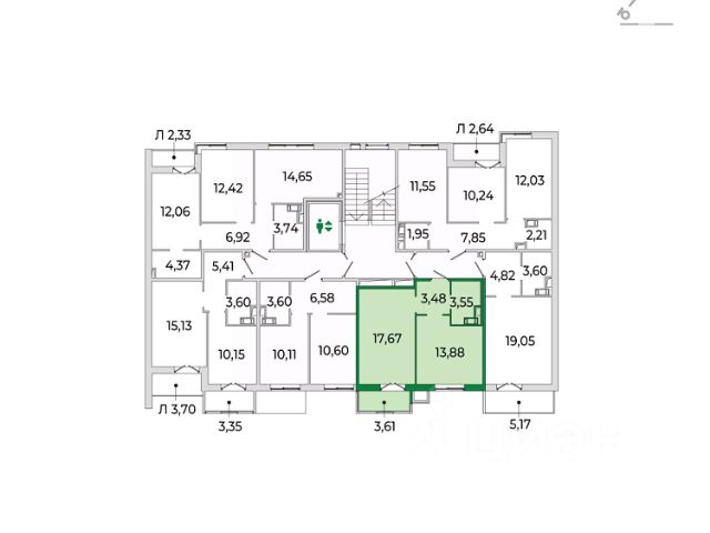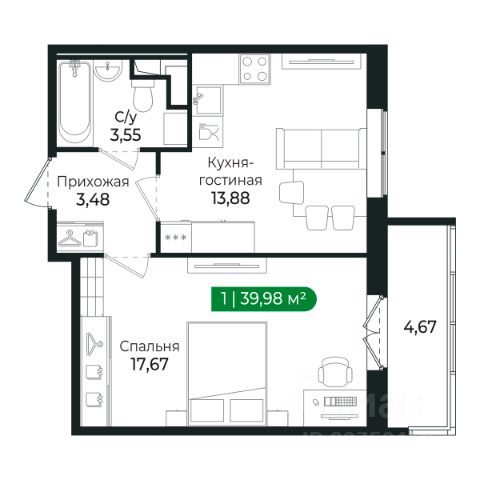 • Комната: 16,5 м² правильной формы, светлая и просторная