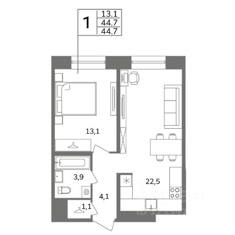 • ✅ Объект наибольшей площади: 44,7 м²
