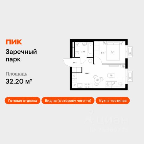 Продаётся 1-комнатная квартира в сданном доме (Графская, 6к1 (Корпус 3)), срок сдачи: III-кв. 2024, общей площадью 30.3 кв.м., на 4 этаже. Расположение, транспортная доступность