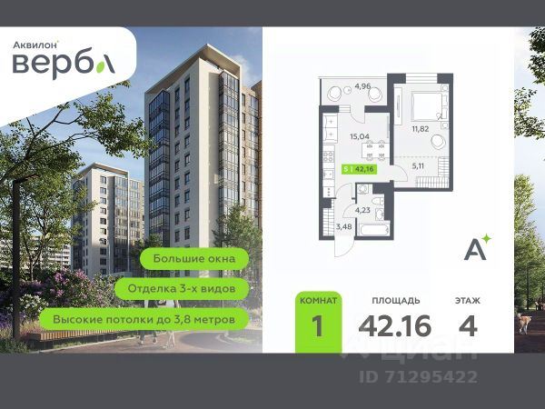 1-комн. квартира от застройщика с предчистовой отделкой в ЖК "ЛЕГЕНДА на Охте" на 4 этаже. Общая площадь: 50 кв.м., жилая: 14 кв.м., площадь просторной кухни-столовой: 26.9 кв.м. Все окна выходят на одну сторону. В квартире один балкон, один раздельный санузел. Высота потолков 2.7 м. Квартира находится в корпусе B. Дом монолитный, двухподъездный, высотой 14 этажей. На этаже 6 квартир. В подъезде 1 пассажирский и 1 грузовой лифт. Начало строительства - 1 квартал 2026 года. Окончание строительства - 4 квартал 2029 года. Оформление сделки по договору долевого участия. В шаговой доступности от жилого комплекса находятся станции метро (расстояние по прямой): "Новочеркасская" (1.1 км), "Ладожская" (1.3 км), также недалеко от этого корпуса находятся станции метро: "Площадь Александра Невского", "Чернышевская", "Площадь Восстания". Охта — район с выраженным индустриальным характером и архитектурным наследием XX века. Северная часть территории характеризуется сложившейся застройкой и социальной инфраструктурой, которые формируют образ жилого района комфорт-класса. Южная часть расположена ближе к набережной Невы и историческому центру города. Здесь активный ритм деловой и культурной жизни, знаковые памятники архитектуры и развитая транспортная сеть. Именно здесь, на приватной территории, сформированной извилистым течением реки Охты, расположен кластер статусных жилых проектов, ансамбль которого завершает проект "ЛЕГЕНДА на Охте". "ЛЕГЕНДА на Охте" — новый проектс высокими продуктовыми стандартами LEGENDA: продуманный выбор планировочных решений, технологичная комплектация квартир, авторская модель благоустройства, приватность и сервисы. Паркинг и кладовые 10 минут езды до центра города, набережной Невы, деловых кластеров. В шаговой доступности все необходимое для жизни: статусный молл, бизнес-центры, фитнес-студии, парки и супермаркеты. Квартиры спроектированы на базе лучших планировочных решений: дизайнерские квартиры, светлые кухни-гостиные с угловым остеклением, просторные мастер-спальни с собственными санузлами и гардеробными, видовые террасы и лоджии c панорамным остеклением, отдельные зоны хранения и удобные постирочные. Широкий выбор типологий: функциональные планировки разной площади, подходящие для семей с детьми, пар или индивидуального проживания. Благоустройство на основе авторской функционально-компонентной модели Приватный двор без автомобилей с контролем доступа. Зонирование территории: отдельные пространства для детей разного возраста, игровые и спортивные площадки, рекреационные зоны. Озеленение: крупномерные деревья и кустарники, цветочные композиции, учитывающие сезонность. Бесшовные внутридворовые маршруты. Комплектация квартир TechnoBox — технически подготовленное пространство и готовность к декорированию Современные инженерные системы: - готовность к установке "умных" устройств, сплит-лоджии для кондиционеров, подготовка под ПВУ. - Выровненные стены и полы, разводка под дополнительные розетки - У
