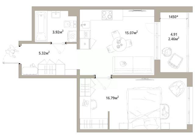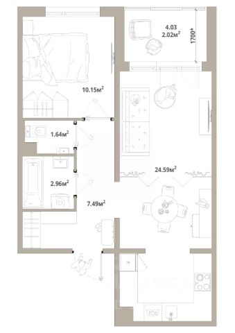 Жилая комната: просторная — 18,3 кв. м. Это отличная возможность сделать удобное зонирование: организовать спальное место и уютную гостиную или рабочий кабинет.