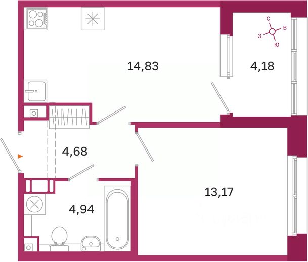 - Просторная, наполненная светом, кухня-гостиная - 18,3 кв.м, 3 увеличенных окна, выходящих на две стороны