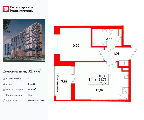 Продается уютная 1-комнатная квартира от застройщика в жилом комплексе "Город звезд" в новом городе на правом берегу Невы. До метро можно добраться на транспорте всего за 13 минут. Удобная, классическая, функциональная европланировка, большая кухня-гостиная 15.33 м², вместительная прихожая 3.5 м². Общая площадь квартиры - 33.33 м², жилая 10.11 м², высота потолка 2.77 м. Квартира продается с отделкой "Норд Лайн серый". Что особенного в ЖК "Город звезд"? • Инновационный Лицей Setl с оригинальной архитектурной концепцией и уникальной образовательной средой • Невский лесопарк под окнами - всегда свежий воздух и полноценный отдых на природе • Четыре тематические площади отдыха с разнообразным благоустройством • Аллея Звёзд - променад протяженностью 5 км с ландшафтным озеленением, зонами отдыха и велодорожкой • Выход на набережную реки Утки, где можно порыбачить или взять напрокат лодку • Единая входная группа с ресепшен и подземный паркинг