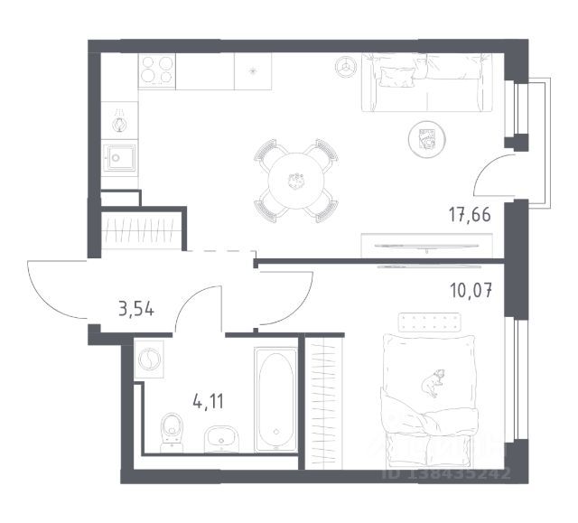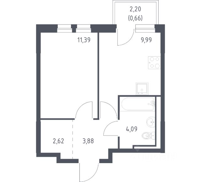 Общая площадь квартиры составляет 31,77 м.