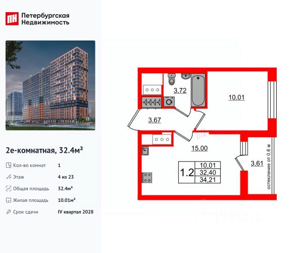 Квартира находится на 4 этаже.