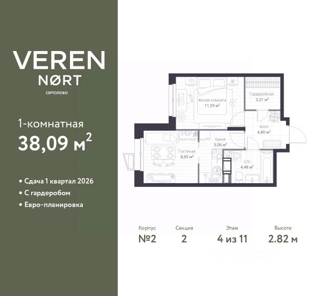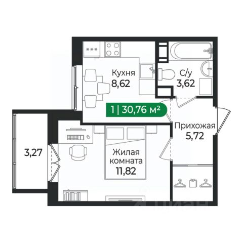 Продаётся 1-комнатная квартира в сданном доме (Графская, 6к1 (Корпус 3)), срок сдачи: III-кв. 2024, общей площадью 30.3 кв.м., на 4 этаже. Расположение, транспортная доступность