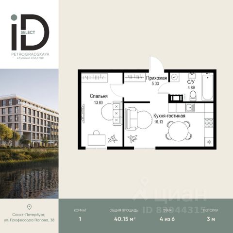 В продаже квартира в строящемся ЖК ID Рetrogradskаyа Комнат: 1 Этаж: 4/6 Секция: С20 Площадь общая: 41,04 кв. м. Площадь жилая: 10,09 кв. м. Балкон: нет Номер: 596 Квартира передается без отделки, что позволяет воплотить свои дизайнерские идеи и создать уникальный интерьер. Во всех квартирах потолки 3 м и панорамные окна высотой 2,8 м. В каждой секции и на каждом этаже спроектированы помещения для установки кондиционеров. Предусмотрены грузовые лифты, на первых этажах организованы места для хранения детских колясок. Отделка входных групп и общих зон выполнена по авторскому дизайну. ______________________________________________ Срок сдачи 2029 г. Квартира продается по переуступке. Клубный квартал состоит из 29 секций в 6 этажей, располагается в Петроградском районе Санкт-Петербурга — между улицей профессора Попова и набережной реки Карповка. Одной из главных достопримечательностей выступает Иоанновский женский монастырь. Окна многих квартир выходят на живописную реку Карповку. Проектом предусмотрено благоустройство набережной, также застройщик отреставрирует артезианскую скважину императорских времён. Комплекс возводится в пешей доступности от трех станций метро — Петроградская, Чкаловская и Чёрная речка. В шаговой доступности находятся магазины, салоны красоты, медицинские центры, рестораны и сервисы. На территории запланирован детский сад на 100 мест и начальная школа на 200 мест. Проектом предусмотрен подземный паркинг, доступ в который осуществляется на лифте с жилых этажей. Гостевые парковки вынесены за периметр домов. Также на территории паркинга предусмотрены индивидуальные кладовые для хранения вещей жителей. Благодаря мосту Бетанкура и удобным выездам на главные транспортные магистрали (съезды на Уральскую улицу, набережную Макарова, ЗСД, Морскую набережную и проспект Кима), добраться до любой точки города и аэропорта Пулково комфортно и быстро.