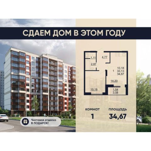Продается просторная 1-комнатная квартира от застройщика в жилом комплексе "Город звезд" в новом городе на правом берегу Невы. До метро можно добраться на транспорте всего за 13 минут. Удобная, классическая, функциональная европланировка, большая кухня-гостиная 18 м², вместительная прихожая 3.25 м². Общая площадь квартиры - 35.47 м², жилая 10.53 м², высота потолка 2.77 м. Квартира продается с отделкой "NORD LINE SILVER". Что особенного в ЖК "Город звезд"? • Инновационный Лицей Setl с оригинальной архитектурной концепцией и уникальной образовательной средой • Невский лесопарк под окнами - всегда свежий воздух и полноценный отдых на природе • Четыре тематические площади отдыха с разнообразным благоустройством • Аллея Звёзд - променад протяженностью 5 км с ландшафтным озеленением, зонами отдыха и велодорожкой • Выход на набережную реки Утки, где можно порыбачить или взять напрокат лодку • Единая входная группа с ресепшен и подземный паркинг