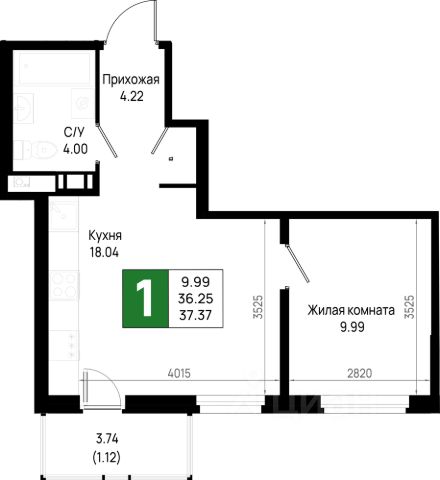 Квартира находится на 4 этаже.