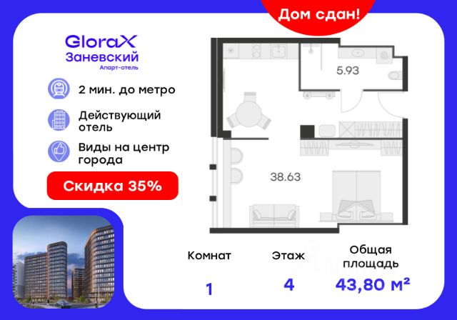Продается 1-комн. апартамент на 4-м этаже в Апарт-отеле "GloraX Заневский" с сервисом 4*. Старт работы отеля - декабрь 2024 г.! Общая площадь лота составляет 51,64 кв. м, из которых 12,48 кв. м отведено под жилую. Номер апартамента - 442. Преимущества: - Апарт-отель с сервисом 4 звезды - Меблировка и техника - 2 вида доходных программ - Консьерж-сервис - Вход по ключ-карте - Прачечная для гостей на 1 этаже - Уборка номеров - Безопасная территория и изолированный внутренний двор - Pet-friendly Апарт-отель "GloraX Заневский" современный отель с развитой инфраструктурой, удовлетворяющей все потребности самых взыскательных гостей. Апарт-отель "GloraX Заневский" располагается в одном из наиболее перспективных, районов Петербурга в 2х минутах от метро "Ладожская" и Ладожского вокзала, в 10 минутах от Московского вокзала и в 20 минутах от исторического центра. В апарт-отеле "GloraX Заневский" есть все, что необходимо для комфортной жизни, работы и отдыха. Инфраструктура, покрывающая все потребности и ожидания собственников и арендаторов. В радиусе 150 метров находятся супермаркеты с возможностью доставки продуктов прямо до дверей апартаментов. На 1000 кв. м. общественных пространств расположится уютный лобби-бар, ресторан мировой кухни на 80 человек, фитнес-зал и оборудованные коворкинги. В апартаментах "GloraX Заневский" выполнена современная отделка с использованием высококачественных экологичных материалов. Инновационные технологические системы, аварийные и противопожарные датчики, взаимодействие со службами быстрого реагирования гарантируют резидентам комплексную безопасность. В проекте предусмотрен подземный отапливаемый паркинг на 100 мест, куда можно спуститься на лифте прямо от дверей апартаментов. Вся информация по эксплуатации номера аккумулируется в специально разработанном приложении, не имеющем аналогов на рынке. Функциональное и удобное приложение помогает оперативно решать все возникающие вопросы в режиме реального времени. Благодаря инновационному решению по оперативным выплатам деньги от аренды поступят на ваш счет максимально быстро. Цена указана при 100% оплате или стандартной ипотеке. Узнайте подробности в Отделе продаж.