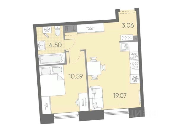 Продается 1-комн. квартира от застройщика с предчистовой отделкой в ЖК "Северный ветер" на 4 этаже. Общая площадь: 40.69 кв.м., жилая: 9.6 кв.м., площадь просторной кухни-столовой: 16.7 кв.м. Все окна выходят на одну сторону. В квартире одна лоджия, один совмещенный санузел. Высота потолков 2.98 м.