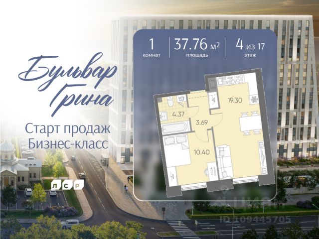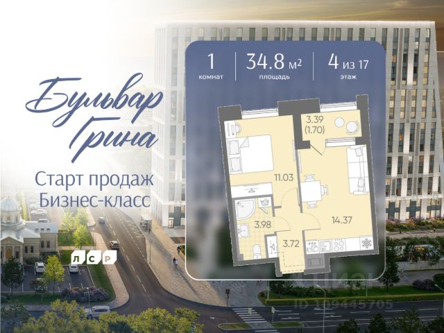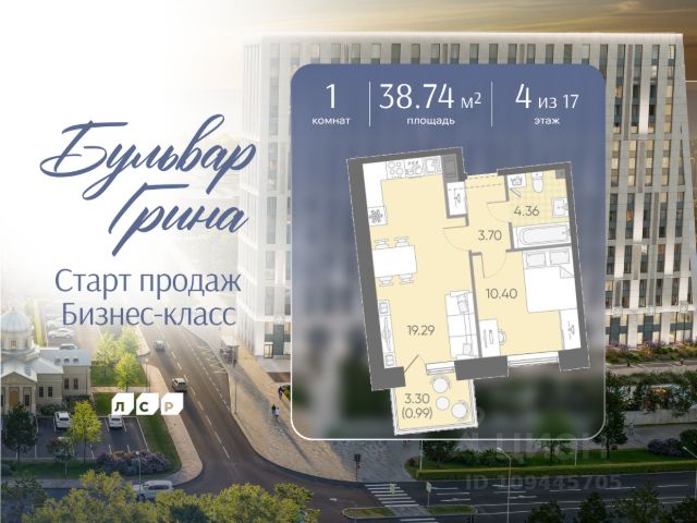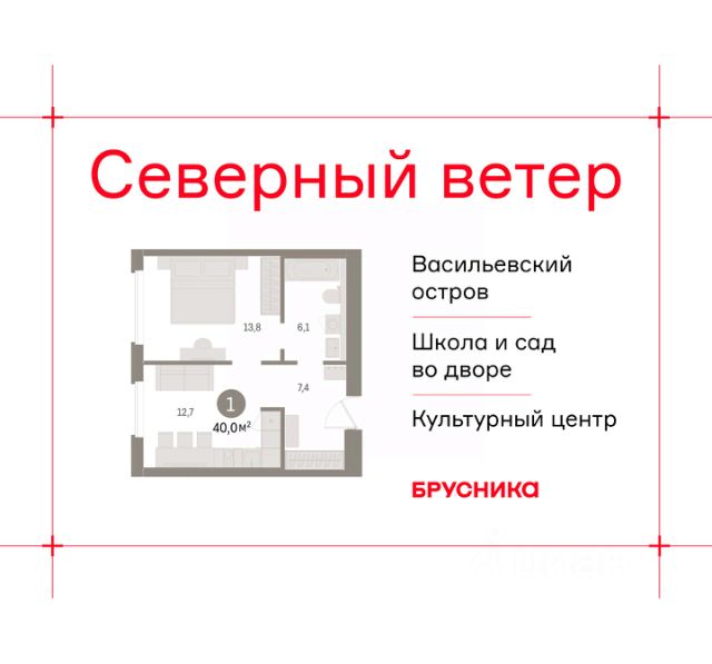 1-комн. квартира с предчистовой отделкой в ЖК "Северный ветер" на 4 этаже. Общая площадь: 57.72 кв.м., жилая: 17.6 кв.м., площадь просторной кухни-столовой: 22.9 кв.м. Все окна выходят на одну сторону. В квартире один балкон и одна лоджия, один совмещенный санузел. Высота потолков 3.1 м.