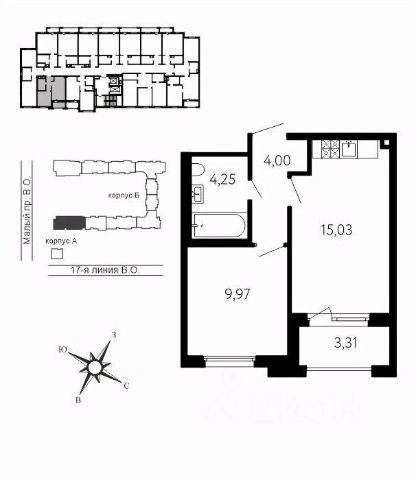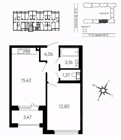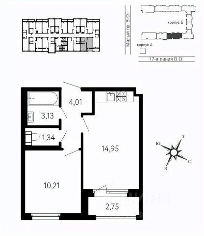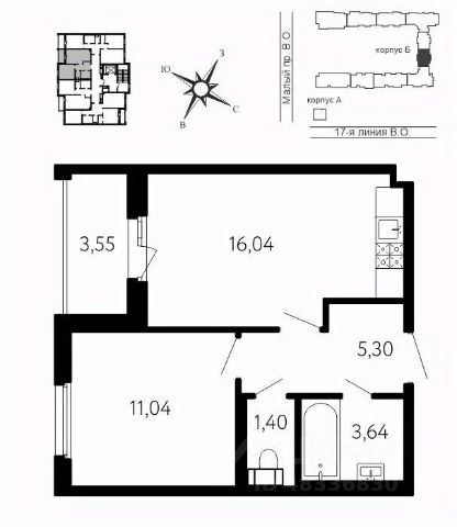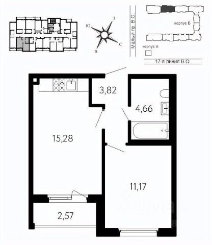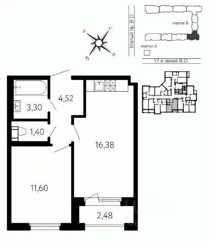 1-комн. квартира от застройщика в Клубный квартал "Ассамблея" на 4 этаже. Квартира без отделки, новый собственник может сделать ремонт по своему проекту. Общая площадь: 38.82 кв.м., жилая: 10.17 кв.м., площадь просторной кухни-столовой: 17.13 кв.м. Все окна выходят на одну сторону. В квартире одна лоджия, один совмещенный санузел. Высота потолков 3.0 м.