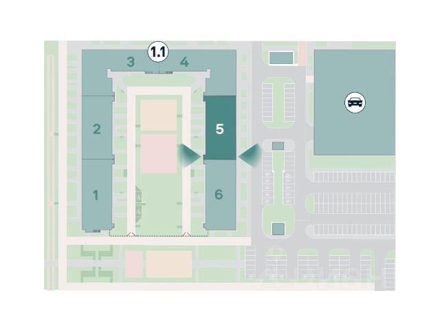 Входные группы мы заглубим относительно основной линии фасада, чтобы подчеркнуть входы в ритейл и места общего пользования. Материалы отделки будут приближены к натуральным. Первые этажи домов мы облицуем плиткой, имитирующей клинкерный кирпич.