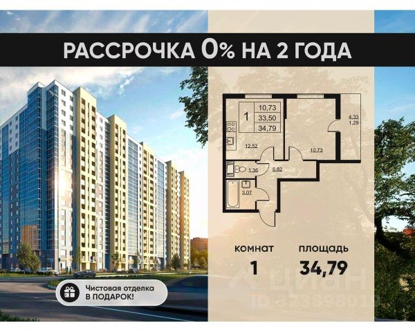 Cрок сдачи - 4 кв 2028 Продается однокомнатная квартира в жилом комплексе "Высота" от ГК СТОУН нa 5 этаже. Общaя площадь cоcтaвляeт 33.53 кв. м. Квартира с отделкой под ключ. Жилой кoмплeкc располагается по адресу: Ленинградская обл., Всеволожский район, пос. Бугры, Гаражный проезд, ул. Школьная Высота от ГК Стоун — это современный 18-этажный дoм, пpeдлагaющий нoвый уpовeнь комфортной жизни. Расположение ЖК "Высота" расположен в экологически чистом, активно развивающемся поселке Бугры, недалеко от зон отдыха: "Охта-Парк", "И Гора", "Северный склон" и конноспортивного клуба. Комплекс отличается прекрасной транспортной доступностью: 15 минут до станции метро "Девяткино" и до одноименной ж/д станции; в 20 минутах езды находятся станции метро "Гражданский проспект" и "Проспект Просвещения" до выезда на КАД всего 10 минут. Комплекс состоит из одного дома, разделенного на 7 секций. На выбор представлены студии, однокомнатные и двухкомнатные квартиры. Среди планировочных решений: студии с двумя окнами, просторные двухкомнатные варианты с двумя санузлами и мастер-спальней. Все квартиры сдаются с готовой чистовой отделкой. Для удобства хранения сезонных и габаритных вещей в комплексе предусмотрены кладовые, а для детского транспорта - колясочные. Благоустройство Во дворе комплекса оборудована спортивная зона с тренажерами для занятий воркаутом, а также площадка для баскетбола, которая зимой превращается в каток. Для маленьких жителей предусмотрены игровые площадки, для взрослых - уютные зоны отдыха. На территории будут высажены деревья и пышные кустарники. Удобство добавляют велопарковки, расположенные у парадных и во дворе, а также отдельные входы на автостоянки. Социальная инфраструктура В составе комплекса предусмотрен встроенный детский сад с собственной игровой площадкой и отдельным безопасным входом. Дошкольное учреждение рассчитано на 75 мест. Ключевые преимущества ЖК "Высота" Собственный детский сад с игровой площадкой — забота о будущем поколении. Близость к метро — экономия времени и сил. Развитая инфраструктура — всё необходимое под рукой. Каток и баскетбольное площадка — здоровье и активный образ жизни. Большой выбор планировок — квартира вашей мечты. Полная чистовая отделка в подарок — заезжай и живи! Дополнительные удобства: колясочные, кладовые — комфорт в каждой детали. Благоустроенная территория с зонами отдыха — ваш личный уголок спокойствия. Безбарьерная среда— забота о каждом.