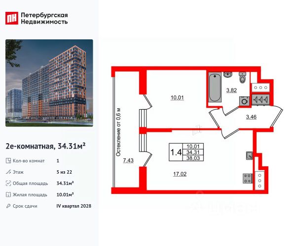 Удобная, классическая планировка, кухня 10.10 м², вместительная прихожая 2.9 м². Общая площадь квартиры - 31.28 м², жилая 15.24 м², высота потолка 3 м.