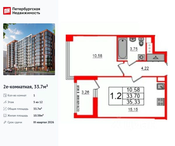Продаётся 1-комн. квартира площадью 35,3 кв.м на 5 этаже 12 этажного дома (Корпус 4.2, Секция 1) проекта ПИК Таллинский парк. Светлый просторный подъезд на уровне земли, функциональная планировка, большие окна, без отделки. "Таллинский парк" - проект в Ленинградской области, в районе Новоселье. До станции метро "Проспект Ветеранов" - 15 минут на автомобиле, а до КАД можно доехать всего за 4 минуты. "Таллинский парк" включает 16 жилых домов, детский сад и школу. В проекте появится центральный сквер с обильным озеленением, а через весь квартал протянутся широкие пешеходные бульвары. В зелёных дворах-парках будут оборудованы современные детские и спортивные площадки, обустроены места для отдыха. На первых этажах разместятся магазины, кафе и другие сервисы. Проектом предусмотрены персональные кладовые помещения - это доступный, экономичный и удобный способ хранения сезонных и крупногабаритных вещей. Освободите свою квартиру для полноценной жизни. Район Новоселье активно развивается в городском формате: здесь уже работают детские сады, школа и магазины. Для любителей зимних видов спорта открыта круглосуточная ледовая арена Ice Rink. За покупками и развлечениями также можно быстро доехать: 10 минут - и вы в Аутлете Fashion House Таллинское, гипермаркетах Лента, Леруа Мерлен и Окей. В 10 минутах на автомобиле находится Финский залив, на берегу которого расположились объекты культурного наследия. Рядом - Константиновский парк с отреставрированным дворцом, а чуть дальше расположена усадьба Знаменка. В великолепном Петергофе вы будете уже через 20 минут. Артикул 1026298 (Застройщик ООО "СПЕЦИАЛИЗИРОВАННЫЙ ЗА СТРОЙЩИК "СТРОЙ-ЭКСПЕРТ ") [cn_sbp_1830863]