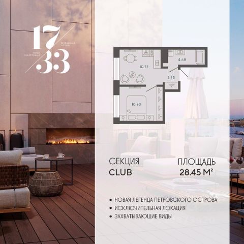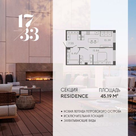Сдаем в 2026 году! Апартамент 78 в Комплексе "17/33 Петровский остров" О проекте: Премиальный комплекс резиденций для истинных ценителей изысканной архитектуры, непревзойденного сервиса и необыкновенной панорамы Санкт-Петербурга. Уникальное расположение между Малой Невой и Петровским прудом подарит будущим резидентам неповторимое ощущение жизни на собственном уединенном острове. Уникальная локация. Проект расположен в объятьях главных островов Петербурга — Петроградской стороны, Васильевского и Крестовского, и в самой зеленой и выигрышной части Петровского — на первой линии Малой Невы, между величественной рекой и тихим Петровским прудом. До ключевых точек притяжения, любимых парков, шопинга и развлечений — пара минут на авто. 100% видовых апартаментов. Виды на Малую Невку, на Петровский пруд.; Проект разделен на три формата: Club, Life, Residence; 5-8 этажей; высота потолка до 7 метров; 1000 м2 общественных пространств; фитнес и СПА; кинозал и зал для семейных торжеств; коворкинг и детский клуб; лаундж с библиотекой; терраса площадью 120 м2 для резидентов; ELEMENT создаёт инновационные жилые и коммерческие объекты в Санкт-Петербурге и Москве, которые устанавливают новые стандарты эффективной жизни в мегаполисах.