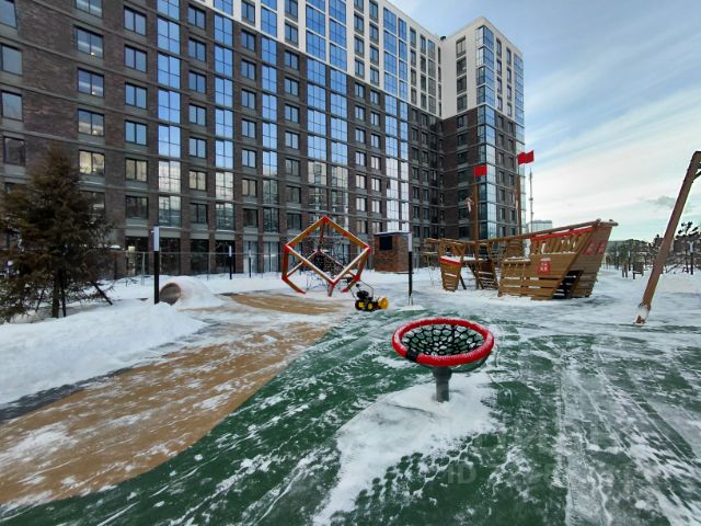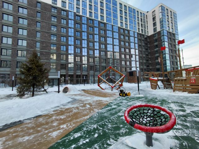Территория дома огорожена и изолирована от машин, имеется подземная парковка , а также закрытая парковочная зона на шлагбауме около парадной. Во дворе есть спортивная и детская площадки, аллея для прогулок с качелями. Также на территории ЖК находится детский сад. Внизу коммерция, Озон, WB.