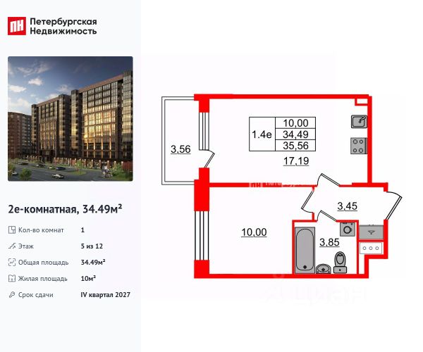 Продается просторная 1-комнатная квартира от застройщика в жилом комплексе "Setl Лофт" в престижном Московском районе. До метро можно добраться пешком всего за 25 минут. Удобная, классическая, функциональная европланировка, большая кухня-гостиная 17.19 м², вместительная прихожая 3.45 м². Общая площадь квартиры - 34.49 м², жилая 10 м², высота потолка 2.75 м. Квартира продается с отделкой "NORD LINE WHITE ВК NEW". Что особенного в ЖК "Setl Лофт"? • Престижный Московский район. Близость к метро "Звёздная" • Архитектура в стиле лофт • Единая входная группа с авторским дизайном и лаундж-зоной • Собственный фитнес-клуб с сауной • Элементы отделки и декора из стали cor-ten на фасадах и лобби