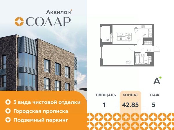 1-комн. квартира с предчистовой отделкой в ЖК "Аквилон Солар" на 5 этаже. Общая площадь: 49.52 кв.м., жилая: 14.35 кв.м., площадь просторной кухни-столовой: 21.83 кв.м. Квартира угловая, очень светлая, естественная вентиляция при открытии окон. В квартире одна лоджия, один совмещенный санузел. Высота потолков 2.7 м. Дом монолитный, многоподъездный, переменной этажности, от 10 до 12 этажей. Квартира находится в 1-й секции высотой 12 этажей в корпусе 1. На этаже 6 квартир. В подъезде 1 пассажирский и 1 грузовой лифт. Окончание строительства - 3 квартал 2028 года. Оформление сделки по договору долевого участия. Аквилон Солар — это пространство нового городского ритма, где свет становится частью архитектуры, а форма — отражением внутренней гармонии. Здесь всё подчинено идее современного комфорта и спокойной уверенности в завтрашнем дне. Дом стремится стать естественным продолжением жизни: сбалансированной, продуманной, наполненной энергией света и движения. Это место, где архитектура не давит, а поддерживает, где город чувствуется, но не мешает, и где каждая деталь говорит о вкусе, внимании и уважении к человеку. Преимущества Повышенная инсоляция квартир Планировки продуманные до мелочей Большие кухни-гостиные до 27,3м2 Мастер-спальни Высота потолков до 2,85 м Увеличенные окна Школы и детские сады в пешей доступности Экопарк на 3 гектара Отделка квартир Чистовая отделка в трех цветовых решениях: Sand, Terra и Graphite Дозаказ для любой квартиры Стандарты Группы Аквилон для вашей комфортной жизни Thermo-S экономия на коммунальных платежах за счет дополнительно утепленных стен, кровли и цоколя. Энергоэффективные окна с селективным покрытием и аргоновым заполнением Soundstop - дополнительная шумоизоляция внутренних перегородок и межэтажных перекрытий, шумозащитные окна, малошумные лифты Light-in - в квартирах устанавливаются широкоформатные окна, увеличены на 30%. Высота подоконников на уровне 60 см от пола. Vent-in - в каждой комнате есть клапаны индивидуальной вентиляции, которые обеспечивают приток свежего воздуха с улицы. inHOME умный дом в каждой квартире Интеллектуальная цифровая система, которая позволит дистанционно решать бытовые вопросы, управлять квартирой и экономить на оплате коммунальных услуг. В состав inHOME входят: IP-домофон, Face key, "умные" счетчики, датчики протечки, дистанционное отключение розеток, и т.д. Паркинг Подземный паркинг с доступом на лифте Локация - м. Звездная и м. Купчино 10 мин. на машине - КАД 5 мин. на машине - Пулково 15 мин. на машине - Невский проспект 35 мин. на машине. #2mDScB