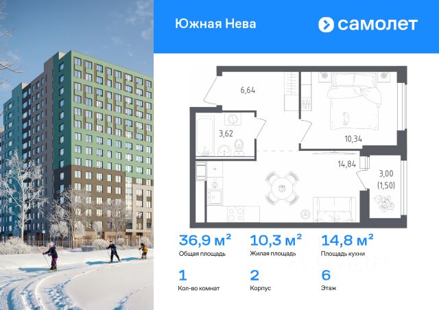 Однокомнатная квартира в жилом комплексе "Имена" — это продуманное пространство для комфортной жизни. Удобная и функциональная планировка позволяет рационально использовать каждый метр: зона гостиной плавно переходит в спальную, а кухня гармонично вписана в общее пространство. Большая лоджия с витражным остеклением наполняет интерьер естественным светом и создает ощущение простора, одновременно обеспечивая уют и приватность.