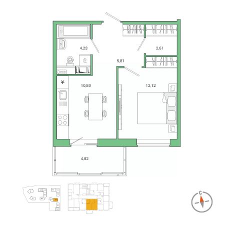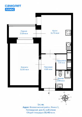 Предлагаем к покупке очень уютную однокомнатную квартиру в кирпичном доме в шаговой доступности от станции метро "Улица Дыбенко".