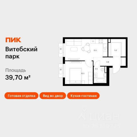 Продаётся 1-комн. квартира площадью 38,2 кв.м на 6 этаже 12 этажного дома (Корпус 6, Секция 2) проекта ПИК Витебский парк. Светлый просторный подъезд на уровне земли, функциональная планировка, большие окна, предчистовая отделка. Жилой квартал "Витебский парк" находится во Фрунзенском районе Санкт-Петербурга, в 15 минутах пешком от метро "Обводный канал". А в 2027 году всего в паре минут от проекта планируют открыть станцию метро "Боровая". В квартал входят 3 детских сада, школа и 7 жилых домов с дворами-парками, куда не могут зайти посторонние люди и заехать автомобили. Школа на 1250 мест и детский сад на 350 мест откроются одновременно с заселением первой очереди, это значит, что жители проекта смогут отдать своих детей в новые образовательные учреждения на территории квартала. Во дворах приятно отдыхать, знакомиться с соседями и даже заниматься йогой, а для детей мы построим детские площадки. Рядом появятся современные спортивные площадки. На первых этажах домов откроются магазины, кафе и другие сервисы. Через весь жилой район протянется широкий пешеходный бульвар для прогулок и спорта. Рядом с "Витебским парком" есть всё для комфортной жизни: магазины, торговые центры, фитнес-клубы, кафе и рестораны, а ещё детские сады, школы, вузы и поликлиника. Артикул 1005262 (Застройщик ООО "СЗ "Лиговский Сити") [cn_sbp_1841812]