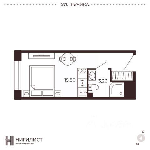 • Планировка квартиры выполнена в одну сторону света, на восток (встречайте утреннее солнце на своей огромной лоджии с чашкой кофе).