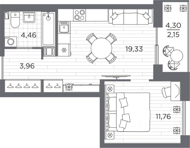 -ПРОСТОРНАЯ кухня-гостиная (16.3 м2)